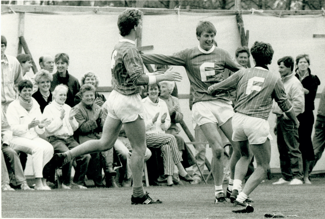 De 80ste Freulepartij in 1982 te Wommels met 53 parturen op de lijst. V.l.n.r.: Germ Zijlstra, Peter Tolsma met de wisselprijs De Villa van de Freule en André Tolsma, de winnaars van de eerste prijs voor de kaatsvereniging “Jan Reitsma” te Roordahuizum.
